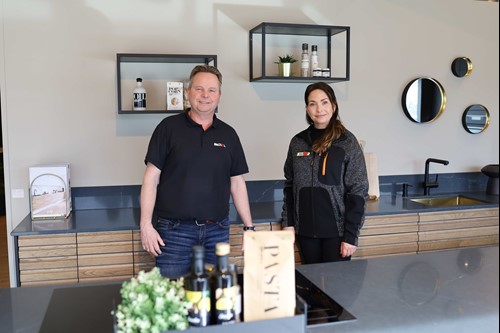 Daglig leder og ansvarlig for region Vestland Arve Ågotnes og interiørkonsulent for kjøkken, bad og garderobe Trine Pettersen.