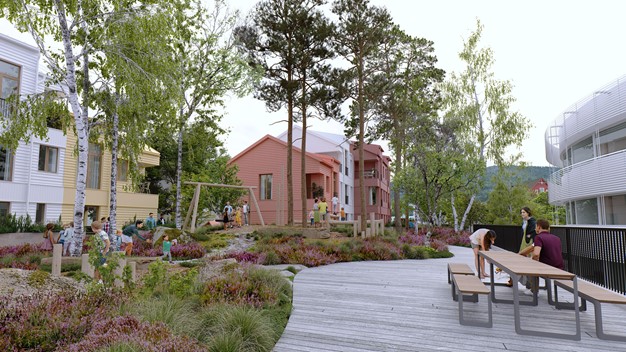 I bakkant av Rotunden er det planlagt å bygge flere townhouse for barnefamilier.